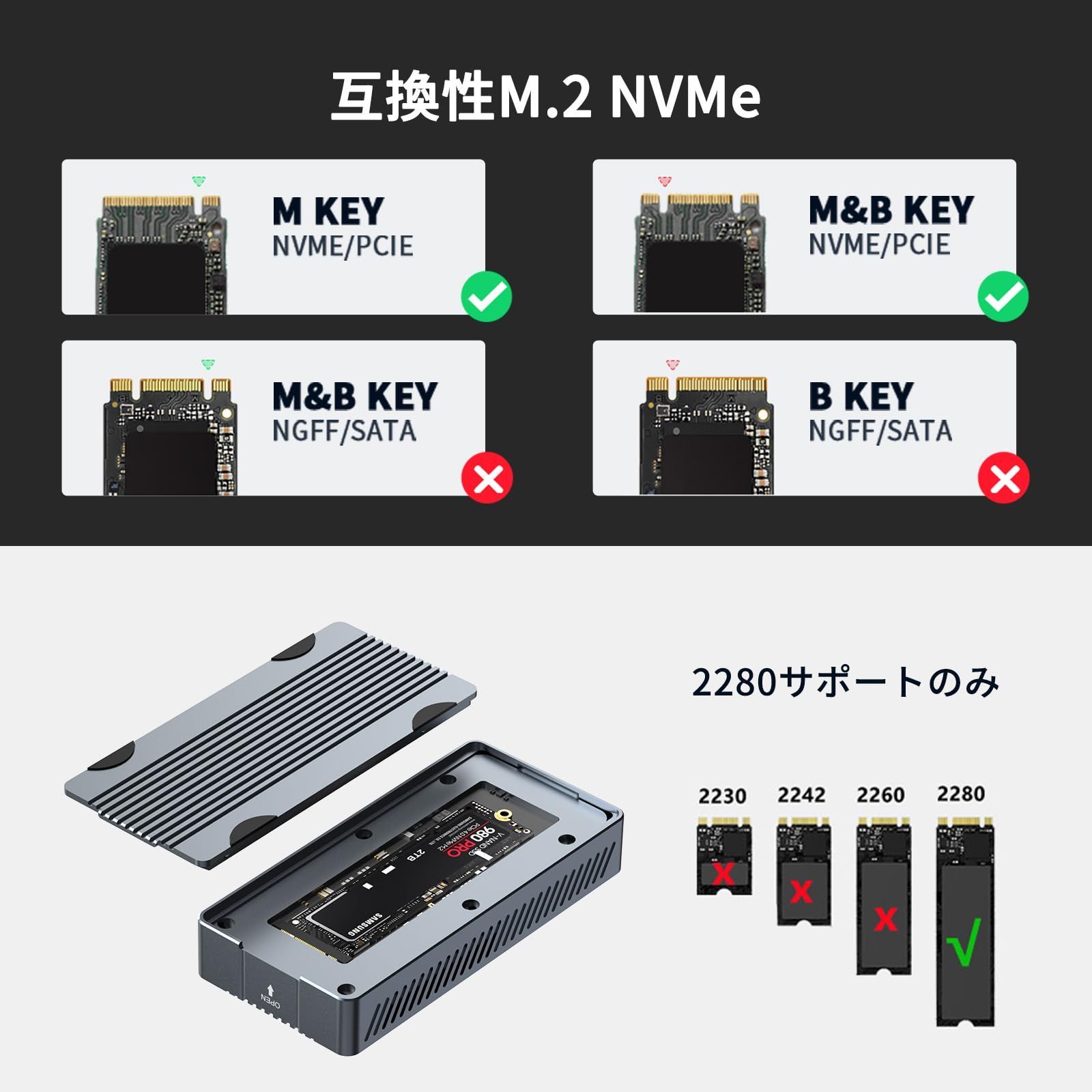 幅広い互換性:Windows/Mac OS/Linux/Androidのシステムを対応します。nvme ssd ケースは、USB4/3.2/3.1/3.0/2.0を採用します。データの転送を簡単に使用します。スムーズなビデオ編集を可能にします。ご注意:なに問題が発生したら、すぐに私たちに連絡して、具体的な問題を教えてください。私たちは最も適切な解決策を提供します。
