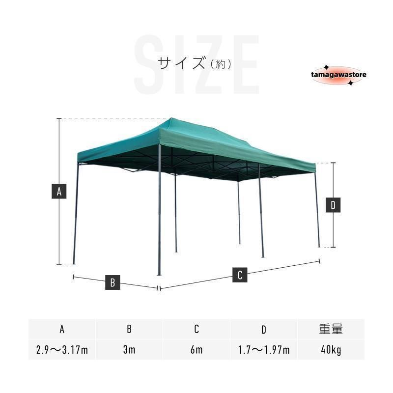 長方形 タープテント 大型 強化フレーム 3 m 6 ワンタッチ 頑丈 大型テント