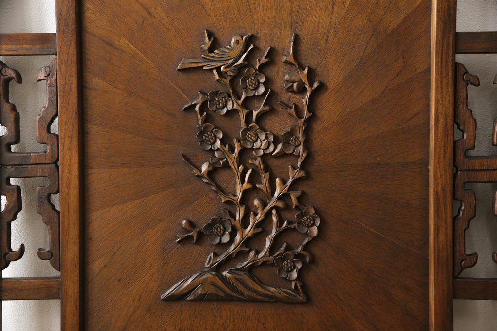 四連衝立て 和製ビンテージ 象嵌 彫刻 R 054822