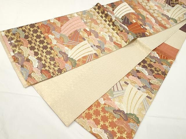 平和屋着物 佐賀錦 六通柄袋帯 唐織 吉祥枝松文 金糸 正絹 yk