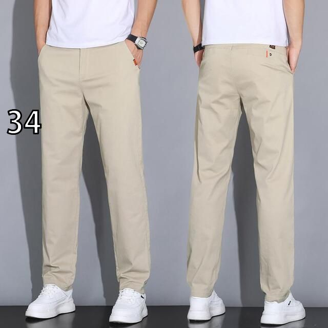 34 メンズ ファッション 服 オシャレ シンプル 大人 かっこいい 大きいサイズ ストリート 紳士服 ビジネス カジュアル パンツ ストレート 夏 薄手 カーキ 綿