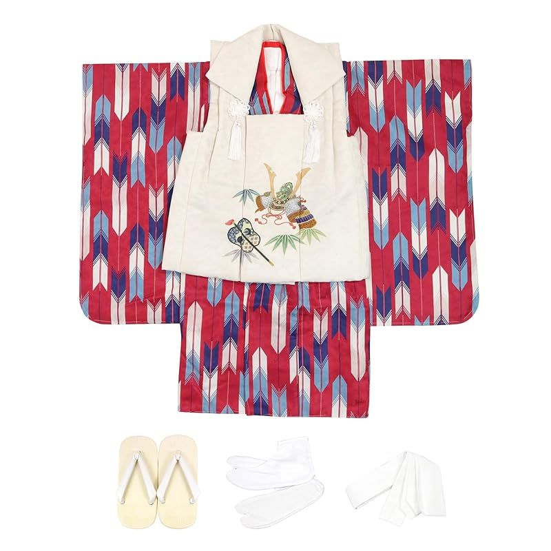 在庫 KYOETSU キョウエツ 七五三 3歳 着物 男の子 被布 フルセット しちごさん 10.緋矢と兜 90-100 cm 0