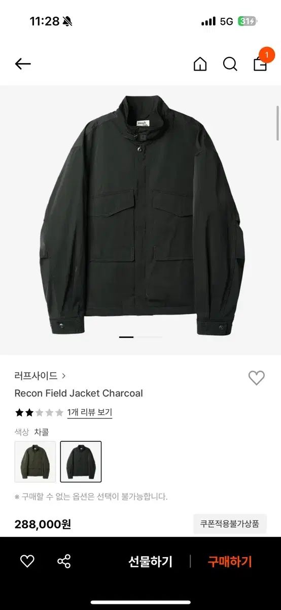チャコールカラーのラフサイドリコンフィールドジャケット。