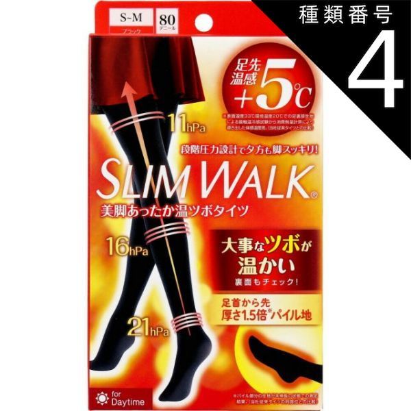 種類4 スリムウォーク 美脚あったか温ツボタイツ 80デニール ブラック S-Mサイズ レギンス レディース タイツ 着圧 段階圧力 リンパ 血行 むくみ 脚 ケア おやすみ 外出 温かい