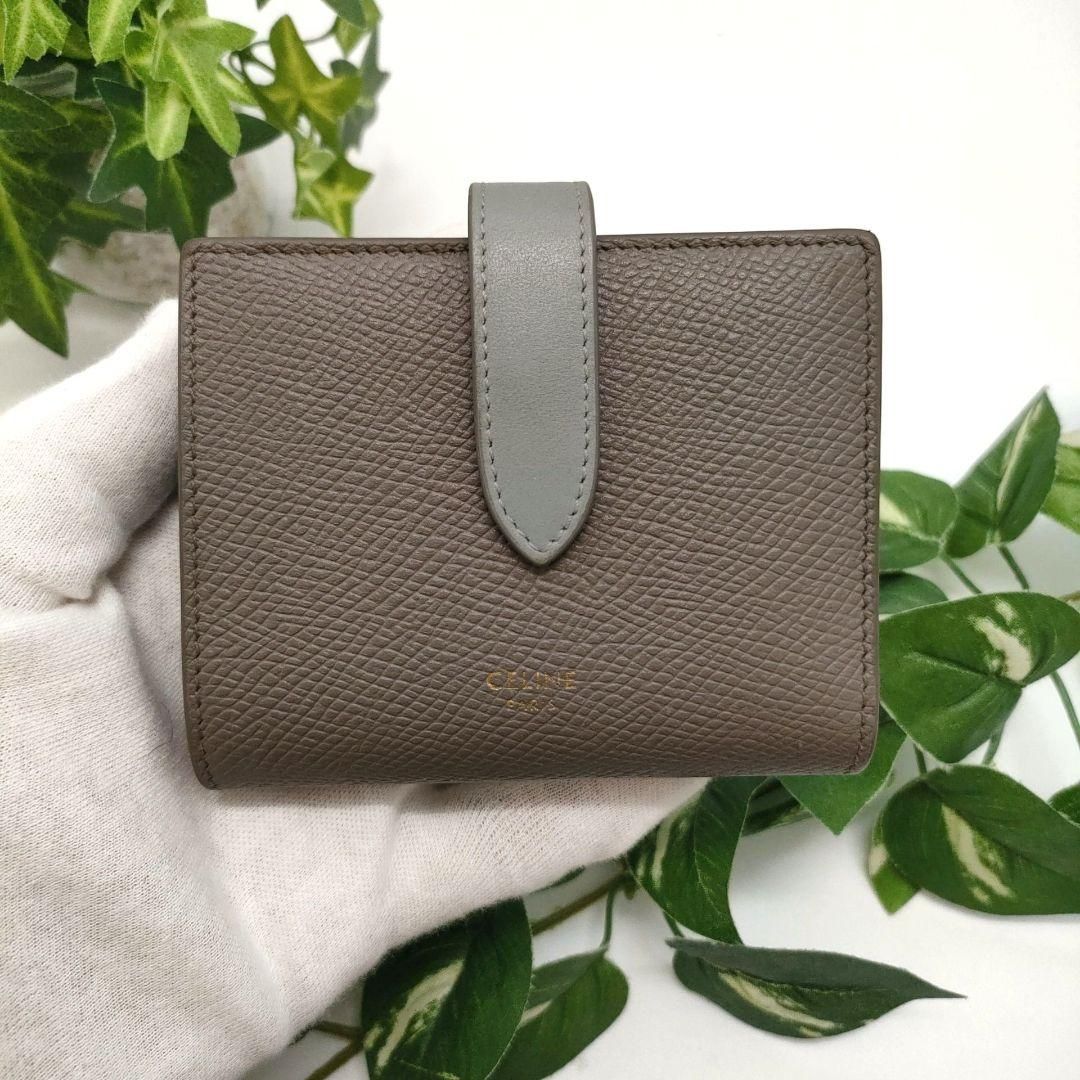 セリーヌ 折り財布 スモールストラップウォレット グレー ライトブルー