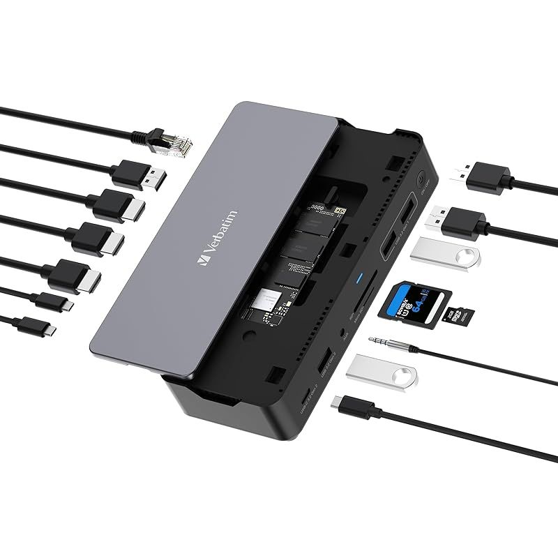 バーベイタム Verbatim バスパワー USB Type-Cハブ ドッキングステーション 15 in 1 HDMI×2 ディスプレイボード USB-A×4 USB-C×3 インサーネット SD Micro オーディオ 内蔵M.2 SSD用スロッ 0