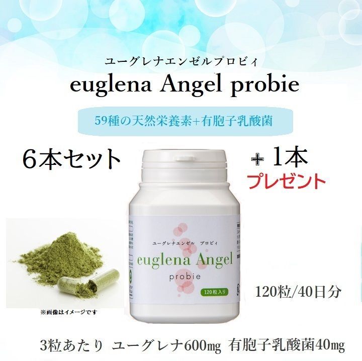 ユーグレナ エンゼル プロビィ 120粒入 6本セット 1本プレゼント サプリメント 野菜 魚 肉 59種類もの天然栄養素 有胞子乳酸菌 1日3粒 カプセル40日分 euglena Angel Probie