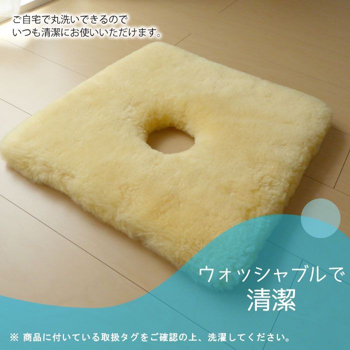 洗える ムートン座布団 穴あき 座布団 メディカルムートン 医療 介護用 角座薄型 ざぶとん 穴空き ムートン ドーナツクッション 薄め 床ずれ予防 体圧分散 舛田 マスダ MM-22