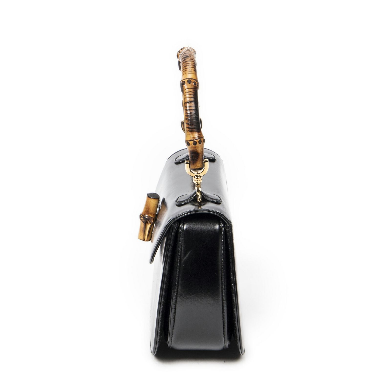 GUCCI グッチスモールバンブートップハンドルフラップ茶色スムースカーフスキンレザーA