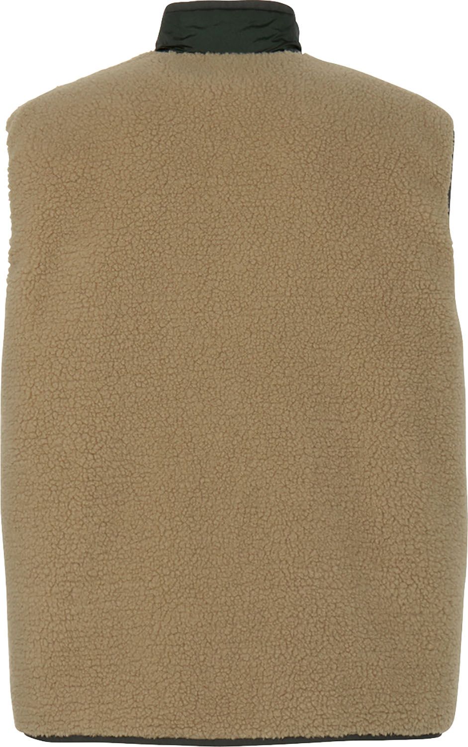用途に合わせてリバーシブルで着こなせる、布帛とフリースのよさを掛け合わせたコレクション。布帛側はパーテックス ダイヤモンドフューズを採用。特殊な異形断面糸を使用した生地はフラットな表面で汚れなどが付きにくく、耐摩耗性、耐久性に優れているため、擦れや汚れが気になるシーンで重宝します。フリース側はポリエステルのボアフリースで保温性を考慮。ボリュームを抑えめにし、インナーとしても使いやすい仕様です。シンプルでゆったりしたシェイプのベストは、配色が効いたデザイン。布帛、フリース双方の両サイドにファスナーポケットがあり、ポケット内部のアジャスターで裾のフィット感が調節できます。