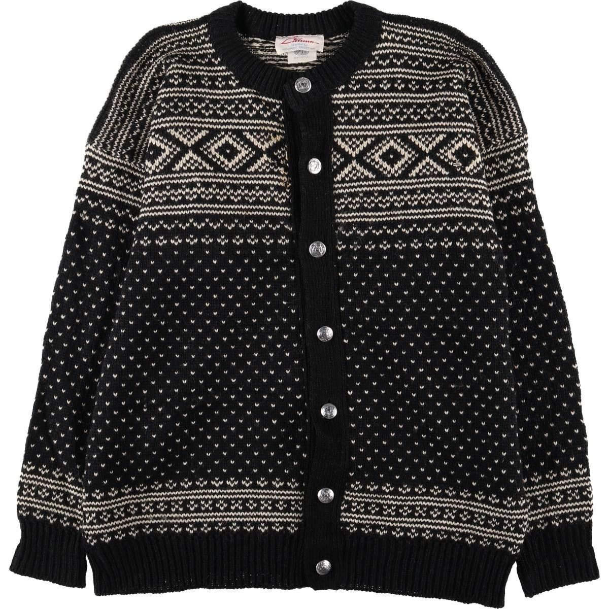 古着 Lillunn 総柄 ノルディック ウールニットカーディガン メンズXL相当 evb 031169