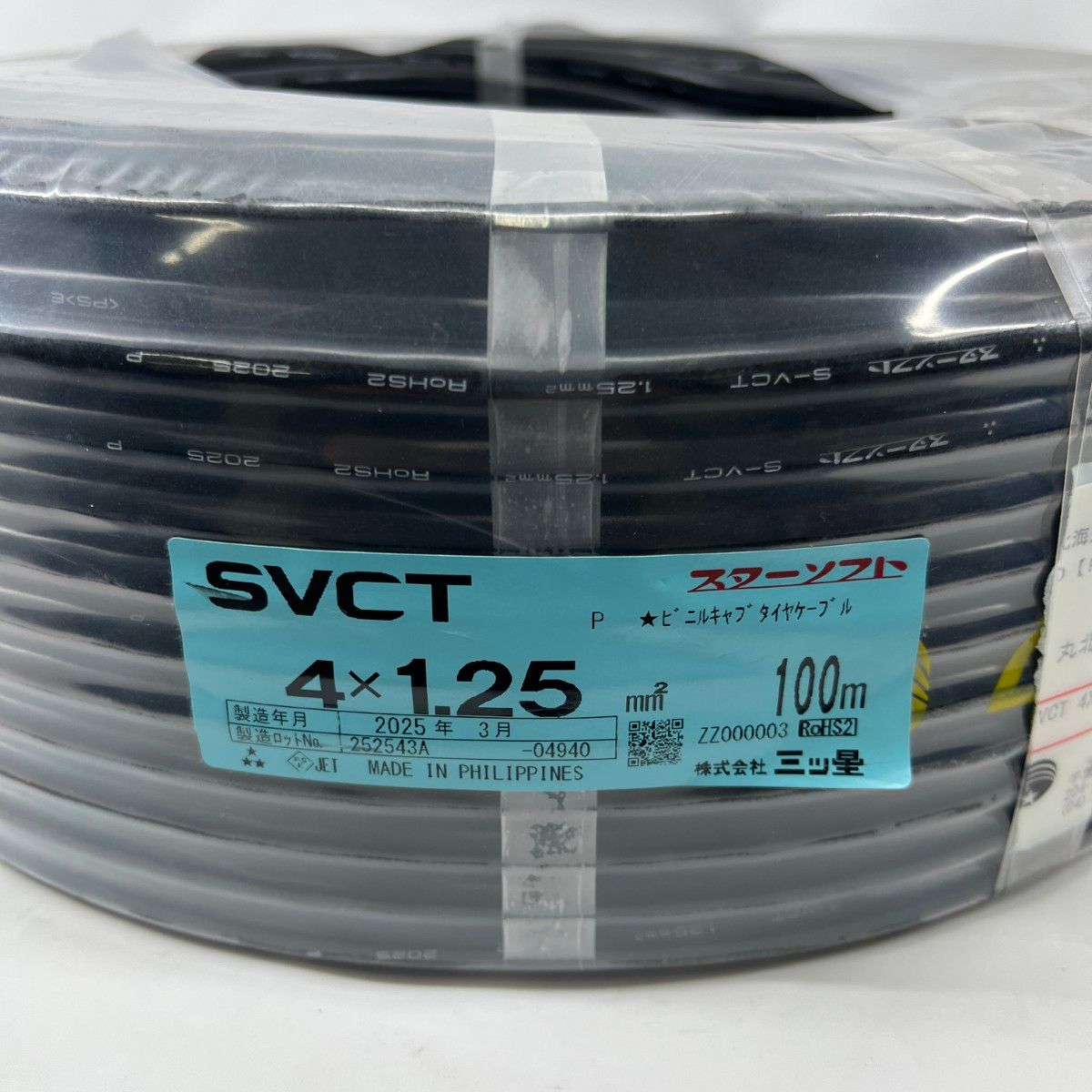 【商品名】新品 三ツ星 S-VCT 4 x 1.25SQビニルキャブタイヤケーブル 黒 100m巻 SVCT4x1.25 ブラック 未開封品