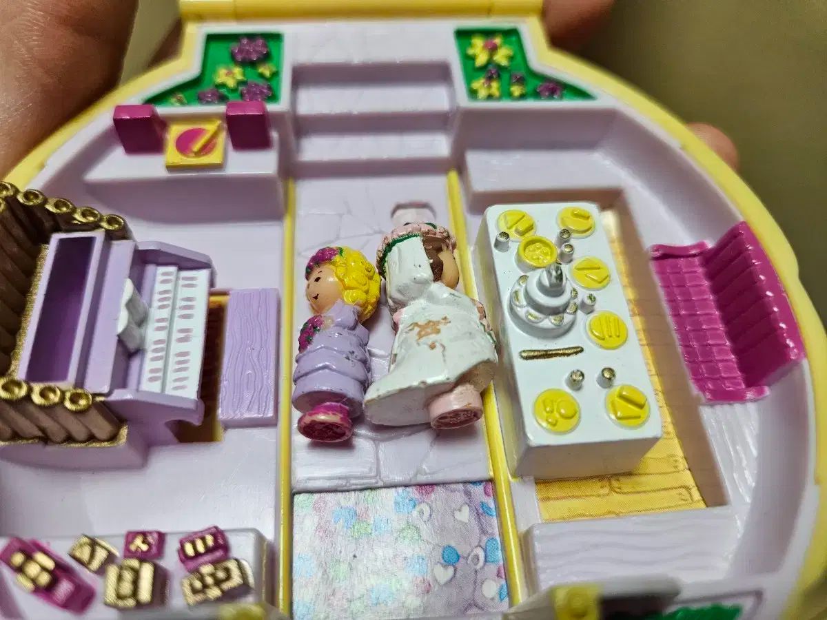 ブルーバード社から1989年にリリースされたポーリーポケットナンシーのウェディングコンパクト製品です。表面に若干の経年感はありますが、金箔も鮮明でコンディションは良好です。新郎フィギュアは欠品です。