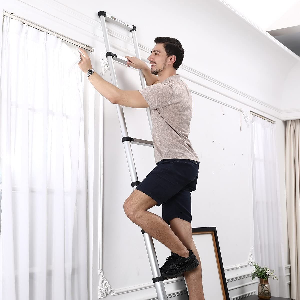 RIKADE 伸縮はしご 耐荷重150 kg 軽量 持ち運びやすい 折り畳み 伸縮梯子 アルミはしご 自動ロック スライド式 伸縮自在 梯子 室内室外両用 シルバー 2 6 m
