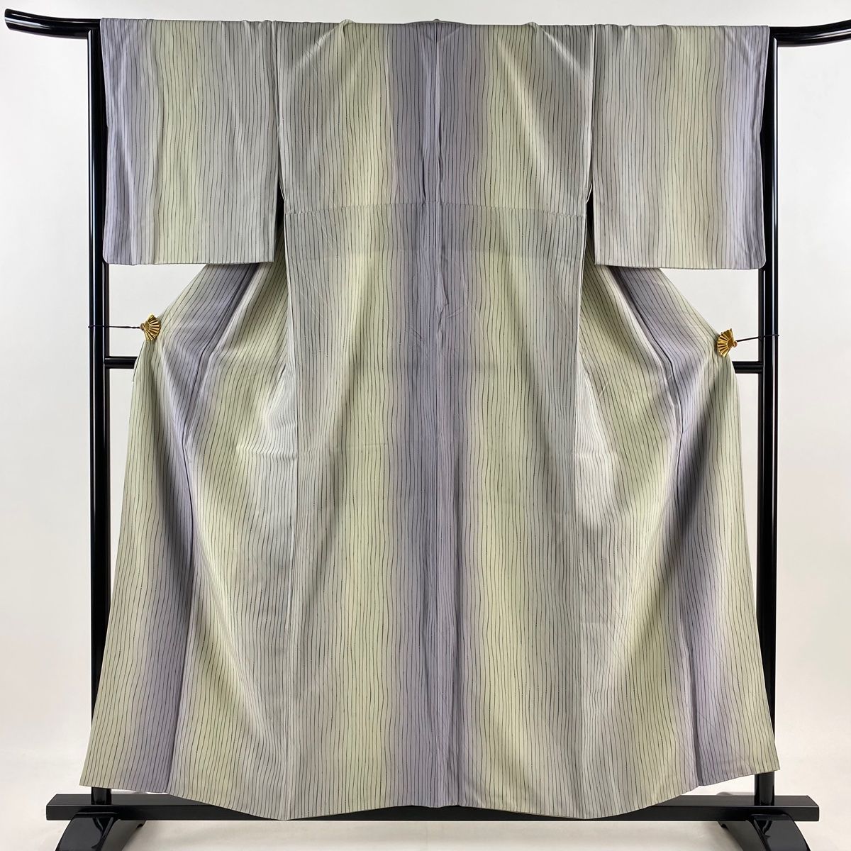 小紋 身丈157 cm 裄丈67.5 L 袷 竹縞 地紋 縦ぼかし 灰紫 正絹
