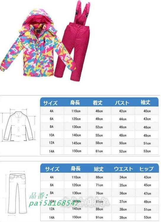迷彩 スノーウェア ボードウェア キッズ 上下セット 子供服 サロペットパンツ ジュニア 雪遊び スノボ ジャケット 保温性 サスペンダー 110-150 防寒 撥水加工 pai 5 a 168547