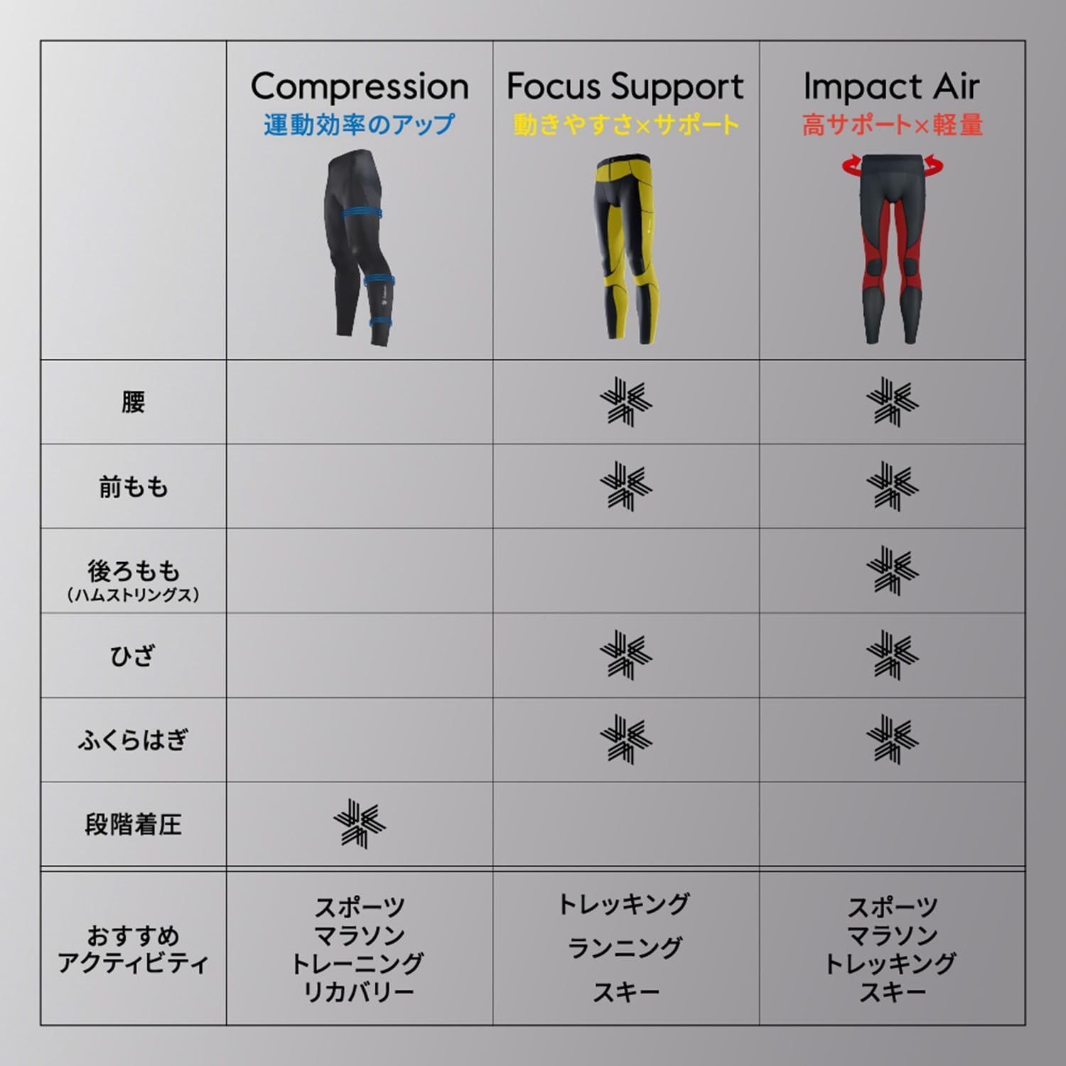【ひざ・腰・ももをフルサポート】軽量・薄手のストレッチ素材を採用し、高いサポート力を持ちながらも、軽快な足運びを両立
