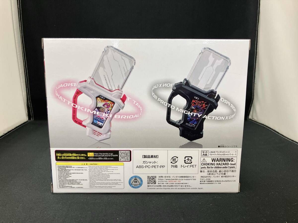 【商品詳細】プレミアムバンダイ限定 使用電池:LR44×4(テスト用付属)【セット内容】ときめきブライダルガシャット、プロトマイティアクションXガシャットノアール【作品名】仮面ライダーアウトサイダーズ