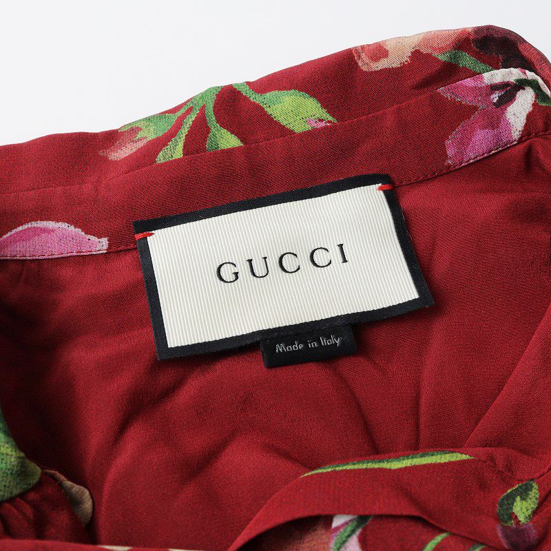 2015年 グッチ GUCCI ミケーレ期 ボタニカルプリント シルク 襟付きプルオーバーワンピース 42 レッド系 フラワー
