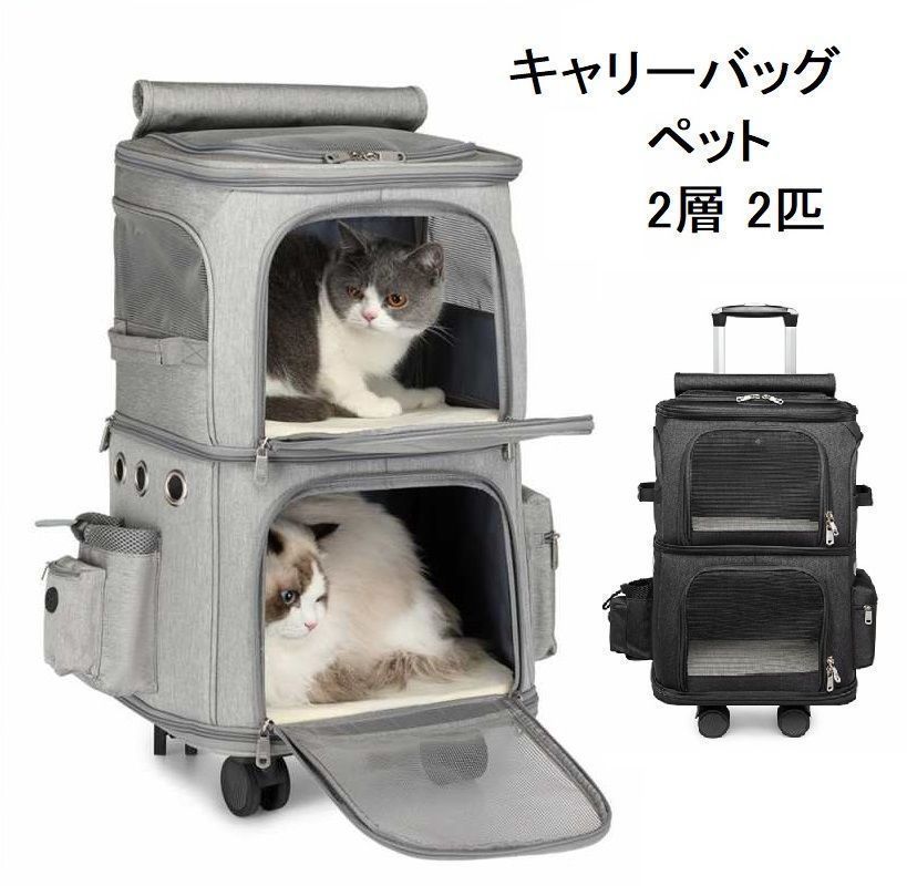 キャリーバッグ犬ペットキャリーケース2匹メッシュ小型犬リュックキャリーバッグキャスター付き犬猫2層中型犬