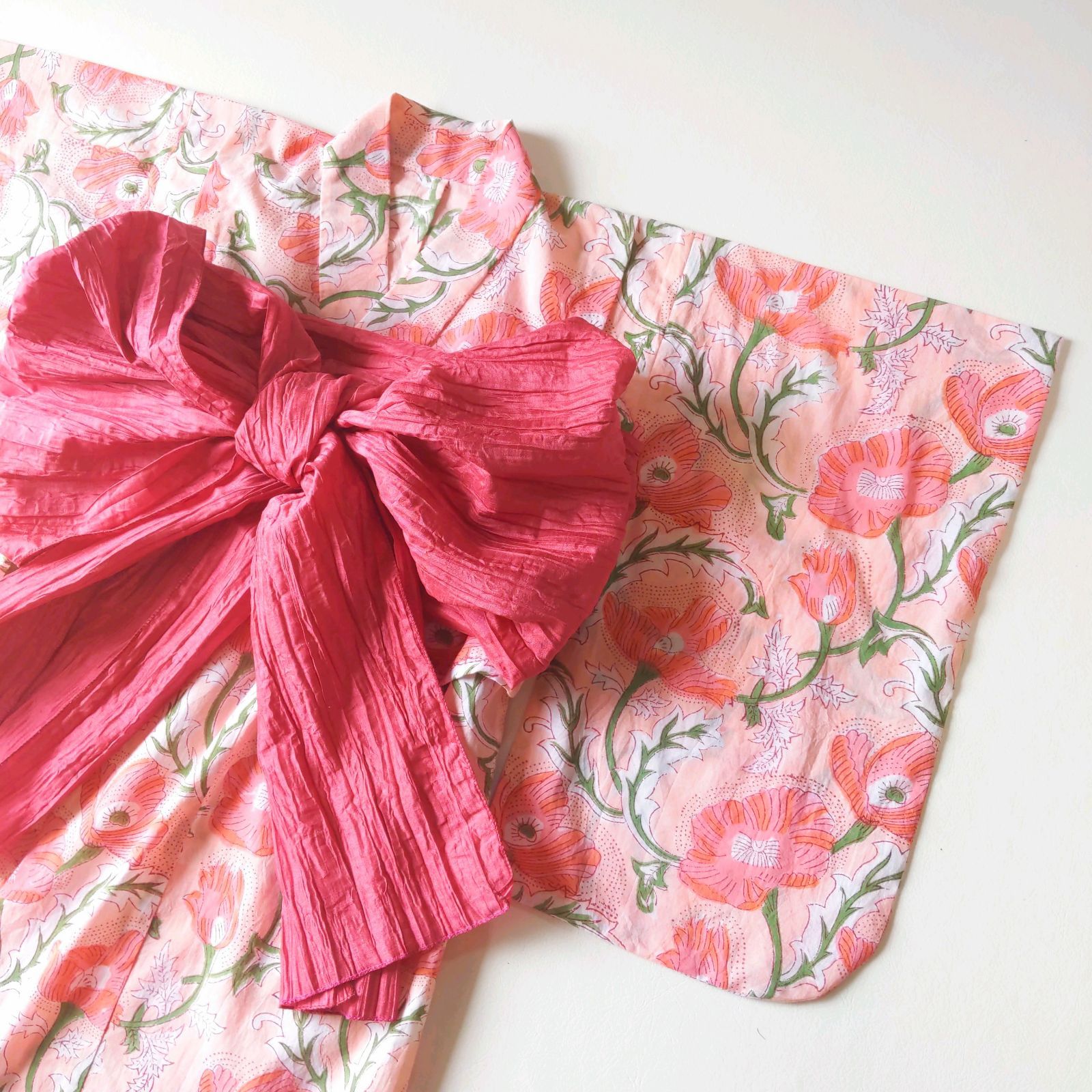 サーモンピンクの浴衣と兵児帯のセット