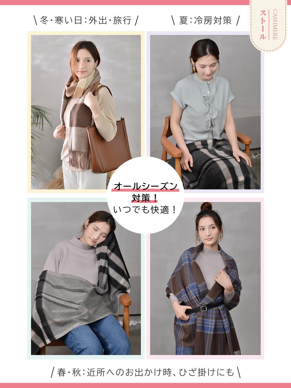 [WEISHY] マフラー レディース カシミヤ 100% ストール 大判 カシミヤマフラー 白 女性 チェック 無地 ふわふわ 秋 冬 ギフト クリスマスプレゼント 誕生日 プレゼント 200cm×60cm