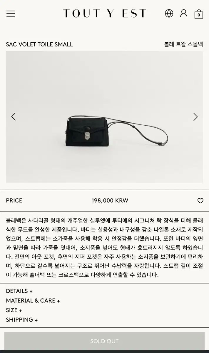 これはトゥティエのボレテールの小さなバッグです