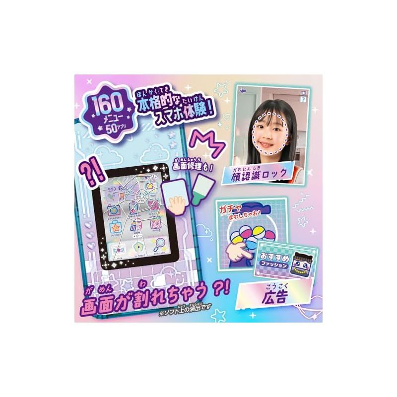 スキなだけ、スキをプラス!meスマホ+(プラス)スキをいっぱいあつめて、私だけのスマホになる!別売のダウンロードアプリカード、スマホケース、ネックストラップで私のスマホをカスタマイズ!