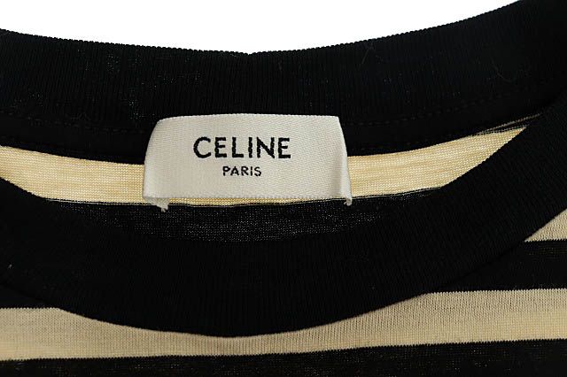 セリーヌ CELINE 24 AW Triomphe Regular T-Shirt In Striped Jersey トリオンフ ロゴ刺繍 ストライプ ジャージー レギュラー半袖Tシャツ 38 NB L ブラック ベージュ 251029