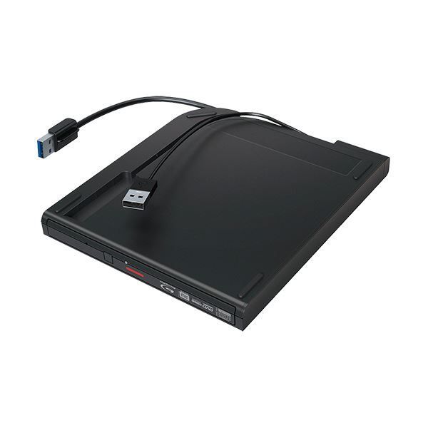 ●薄型パソコンにもマッチする厚さ14.4mmのスリム設計。重さも約300gと軽く、スマートに持ち運びができる外付けブルーレイドライブ。本体色はブラックです。