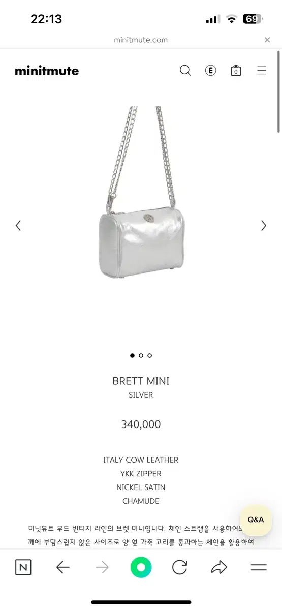 MINITMUTE ミニミュート brett シルバーバッグ 販売