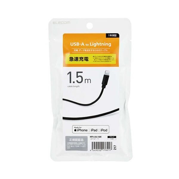 まとめ エレコム Lightningケーブル ブラック 1.5 m RoHS指令準拠 10物質 MPA-UAL 15 BK 1本 ×