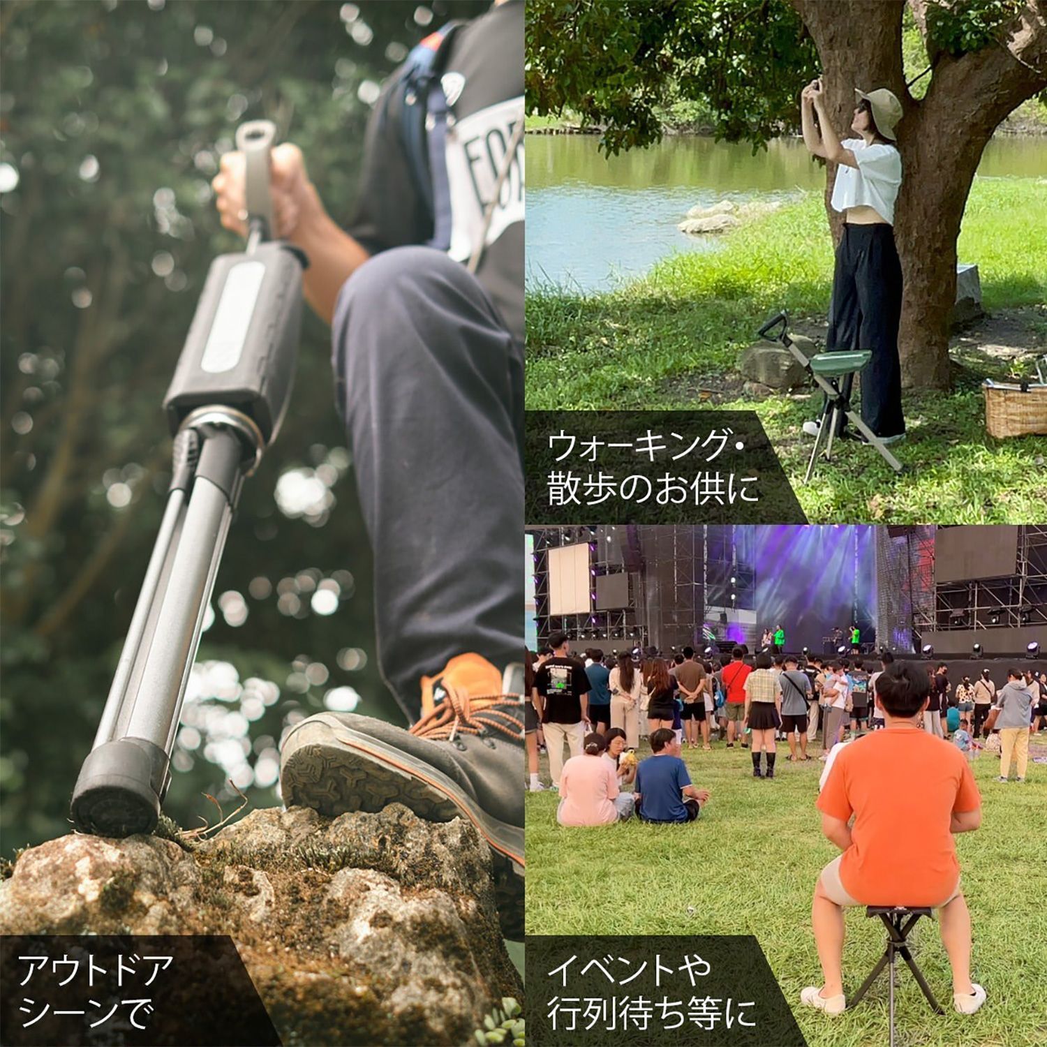 わずか2秒で椅子に展開&ステッキに変形、傘を開閉するように感覚的に簡単に操作できます。