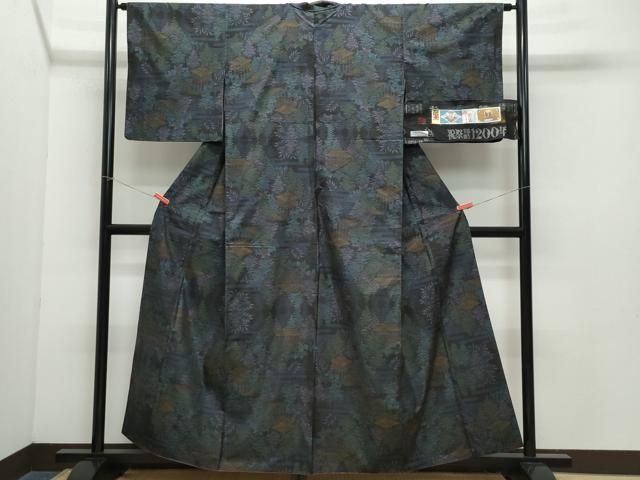 平和屋着物 本場大島紬 9マルキ 泥染め 風景草木文 恵絹織物謹製 証紙付き 正絹 vf