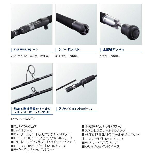 シリーズ最強のヘビージギングモデル。水深~180m+α、または激流エリアで威力を発揮。高負荷時において正確にジグを操作できるパワーを備えつつ、身体への負担を低減するために5’3”レングスに設定。世界の大型魚とのファイトを前提としたヘビーデューティー仕様(オールダブルフットガイド、ロングフロントグリップ、金属製ギンバル)。