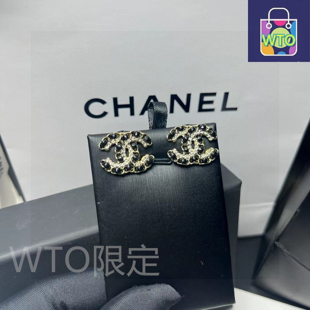 シャネルらしいミニマルデザインに、スワロフスキー製のクリスタルと真皮のチェーン編みが特徴的なアイヤリングです。ブラック&ゴールドのカラーマッチングはクラシックでエレガントな印象を与え、真皮の手編み仕上げが質感をアップさせます。ブランドロゴの文字刻印はシンプルで存在感のあるデザインで、フォーマルからカジュアル、甘いスタイルまで幅広いシーンにマッチする万能アイテムです。