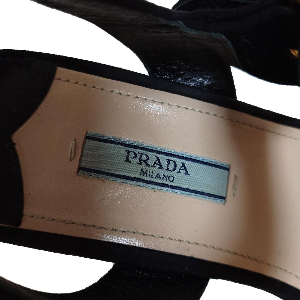 PRADA プラダ サンダル 38 レディース - 黒 プラットフォーム アウトソール張替済
