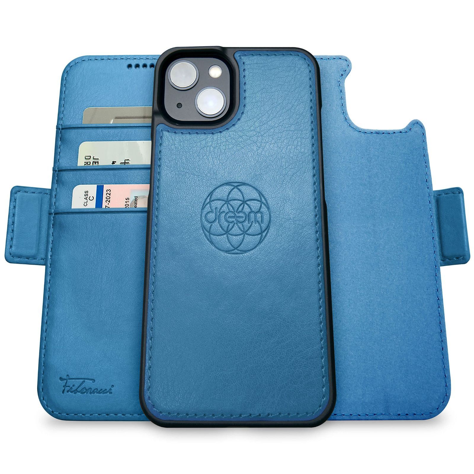 Dreem フィボナッチ(Fibonacci)2イン1 財布型ケース Apple iPhone 14 Plus用 - 高級ヴィーガンレザー製 マグネット着脱式 耐衝撃 携帯電話ケース RFIDカード保護機能 2通りに使えるフリップスタンド付き - スレート
