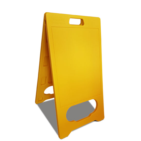 Uitklapbaar bord van geel HDPE kunststof.